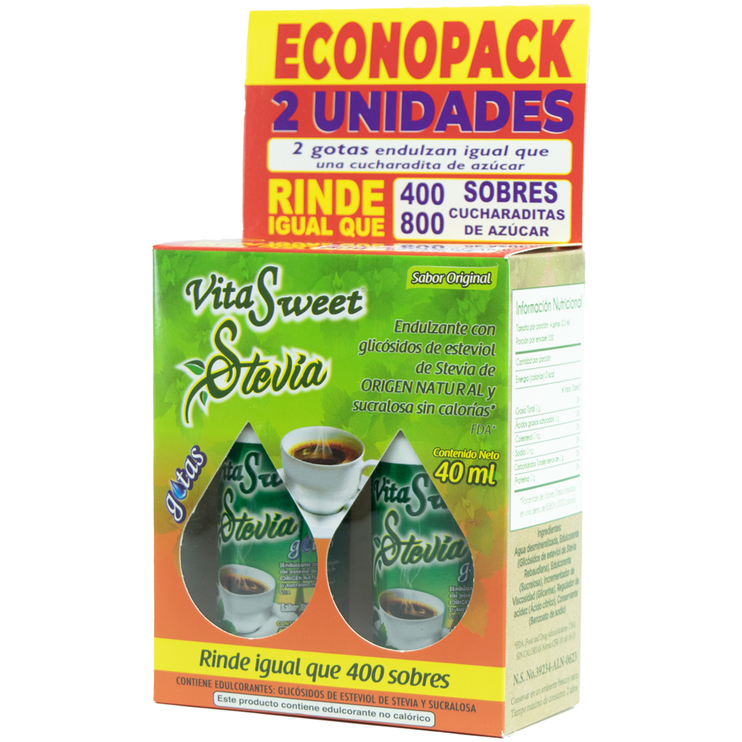 Edulcorantes acalóricos, es decir, no proporciona calorías, ni hidratos de carbono. Apto para diabéticos.